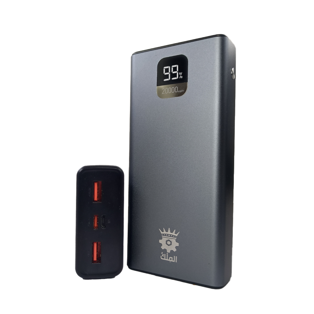 - بسعة 20000 mAh -منفذين شحن -مزود بمصباح -ضمان سنة